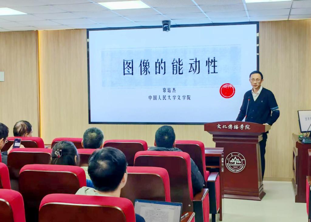 本站讯 11月23日晚,beat365在线唯一官网登录2007届校友、中国人民大学文学院副院长常培杰副教授应邀在文学楼作了题为《图像的能动性:本雅明“辩证意象”观念解析》的讲座,对图像转向理论、艺术自律论及本雅明思想研究进行深度讲授。beat365在线唯一官网登录张红军教授主持讲座,学院师生现场聆听讲座。