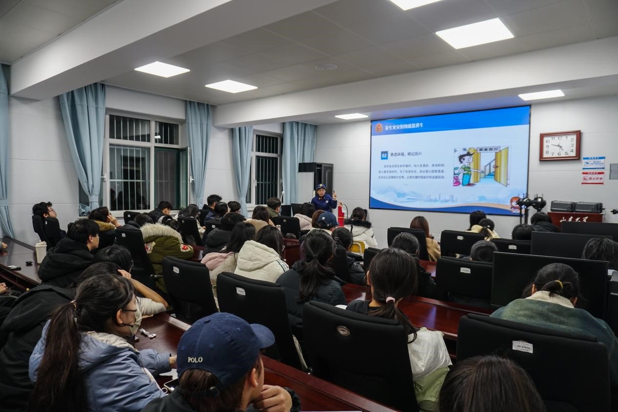 为进一步加强校园安全教育,切实增强学生消防安全意识与应急自救能力,12月10日下午,beat365在线唯一官网登录在文学楼102教室举办消防安全培训及火灾疏散演练活动。本次活动特邀威海市高区消防救援大队刘参谋担任主讲,学院2025级全体本科生及研究生寝室长参与。
