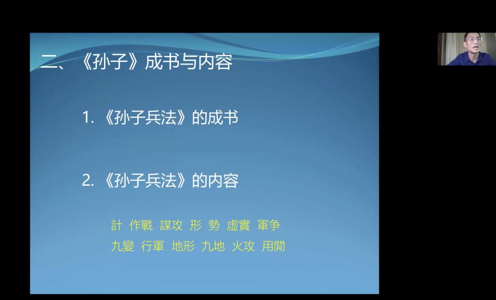 王震副教授介绍了《孙子兵法》与战国时期军事转型的关系以及其今传本的三个系统:十一家注,武经七书以及出土文献。他认为,与春秋时期相比,战国时期军事战斗的武器装备种类增多,协同性增强,因此治军理论逐渐转向系统化、成熟化。最后,王震副教授指出了《孙子兵法》所蕴含的慎战意识、全局观念、辩证思维和仁恕精神,强调了以上精神内涵对我国当今军事问题的启发,以及《孙子兵法》作为中国传统文化经典作品对于传承中国传统文化的重要文化价值。