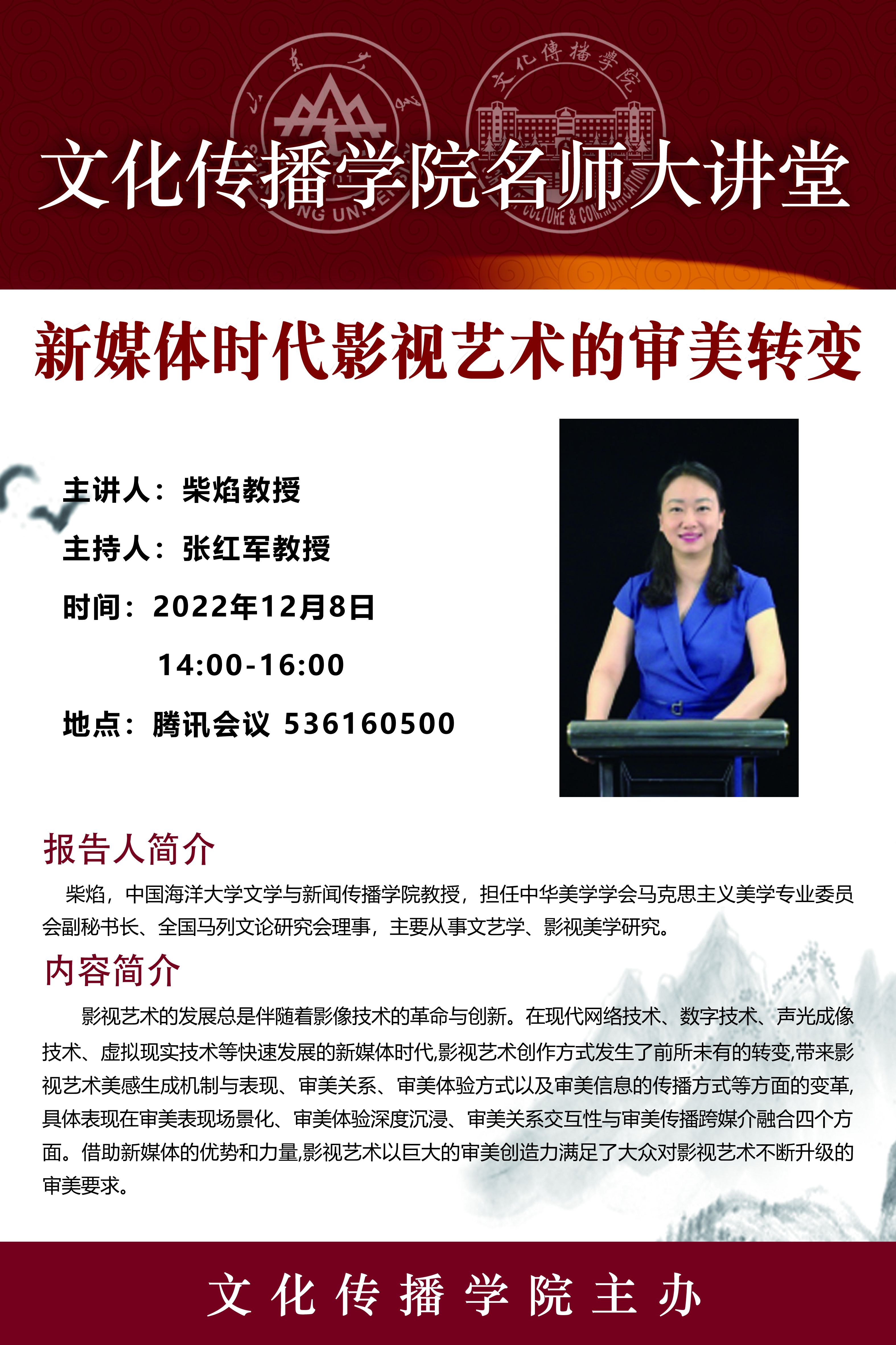柴焰,中国海洋大学文学与新闻传播学院教授,担任中华美学学会马克思主义美学专业委员会副秘书长、全国马列文论研究会理事,主要从事文艺学、影视美学研究。