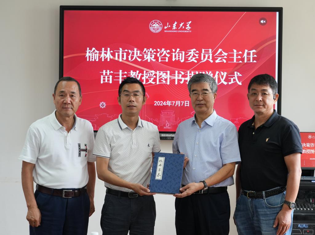 据悉,此次捐赠活动缘于我院特聘教授贾文山博士策划召开的山东大学威海校区办学40周年系列学术活动——“新文化传播学的建构”研讨会。苗丰先生作为代表应邀参会并发言。他认为,文化传播与传承是一种家国情怀、精神价值、审美追求、格局境界和使命担当,文化自信是一个民族最深沉的力量;榆林市作为中国历史文化名城,拥有着丰富的文化遗产和独特的民间艺术,是中华文明多元一体格局中不可或缺的一部分。