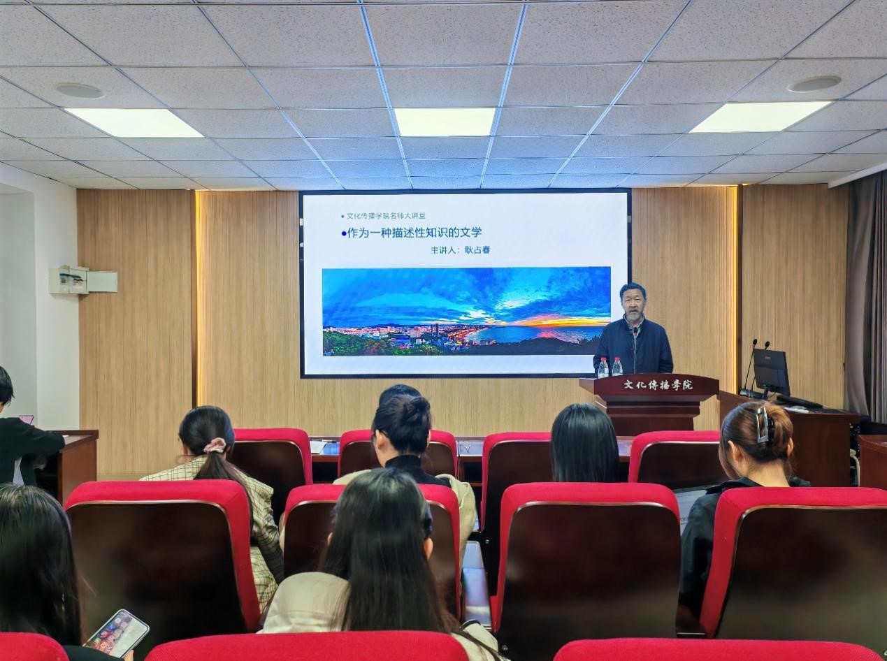10月18日晚,河南大学教授耿占春老师作客山东大学beat365在线唯一官网登录名师大讲堂,在文学楼322为校区师生带来题为“作为一种描述性知识的文学”的学术报告。该讲座由张红军教授主持。威海市作家协会的多位作家,海南大学、河南大学的学者,以及我院部分老师和研究生参加了此次讲座。