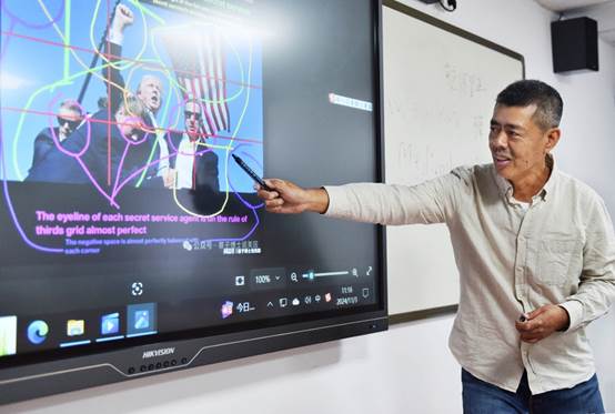 在互动提问环节中,王凤波就街拍与隐私、摄影与真实性的关系,以及人工智能生成图像技术对摄影领域的影响等问题进行了回应。他指出,真实与非真实之间的界限并非固定不变,二者可以相互转化,这就需要摄影师发挥个人主观能动性,通过突出主题和简化构图等方式,找到真实与非真实之间的平衡点。王凤波的作品与观点不仅是对摄影艺术的深刻反思,也是对个人在数字化时代如何通过摄影来表达自我的探索,激发了在场师生对摄影艺术的新思考,为摄影在新时代的发展提供了新的视角和可能性。