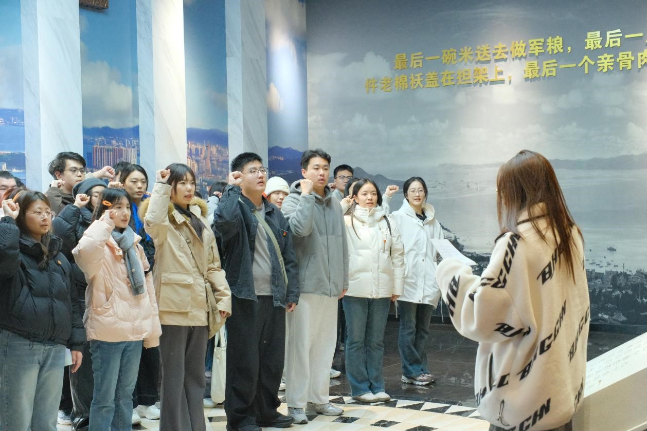 本站讯 为深入学习贯彻党的二十届四中全会精神,用好红色资源,加强党性教育,11月26日,beat365在线唯一官网登录与海洋学院、纪检监察学院研究生党支部联合开展“碧海寻红迹·清风铸党魂”主题党日活动。60余名党员赴里口山十八里担架道纪念馆进行参观学习,在追寻革命先辈足迹、感悟威海人民支前壮举的过程中接受了一次深刻的党性淬炼与精神洗礼。