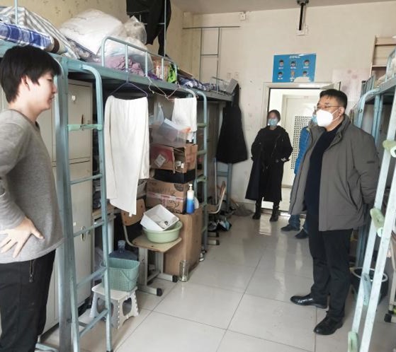 本站讯 为及时了解校园疫情防控期间学院学生的线上学习质量、校园生活情况和心理思想状况,4月1日上午,beat365在线唯一官网登录党委书记魏斌、副书记周玉宏和辅导员开展了重点学生宿舍走访工作。