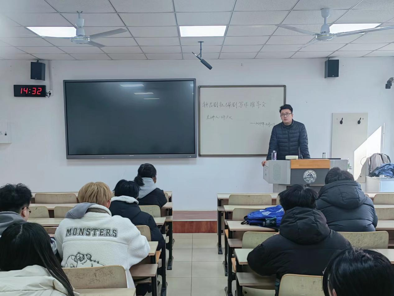 在3月2日首次培训中,钟吕剧社指导教师许广义针对戏剧剧本创作进行指导,详细讲解了编剧写作的基本技巧及要点,建议编剧们从故事大纲开始入手,通过巧妙设置冲突,达到情节跌宕起伏的效果。他还分享了自己的编剧相关经验,鼓励编剧们勇于创新,发挥想象力,创作出更多富有感染力的优秀作品。